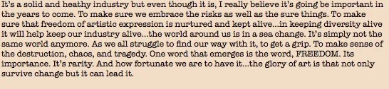Couldn’t helped but wonder as Kim Novak stroked her Golden Lion [ess] [15min in] what if one had that and an Oscar on the shelf? Surely Oscar must be supine! No, no, not on a pyre, play nice everyone. All in the same leaky boat. Also a physics lesson there. If anyone deserves the song I’m Still Here it’s Kim Novak!